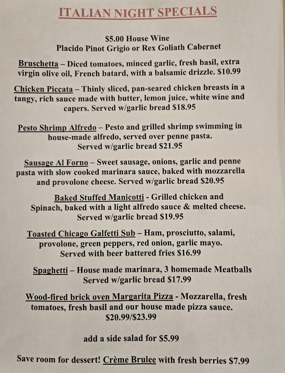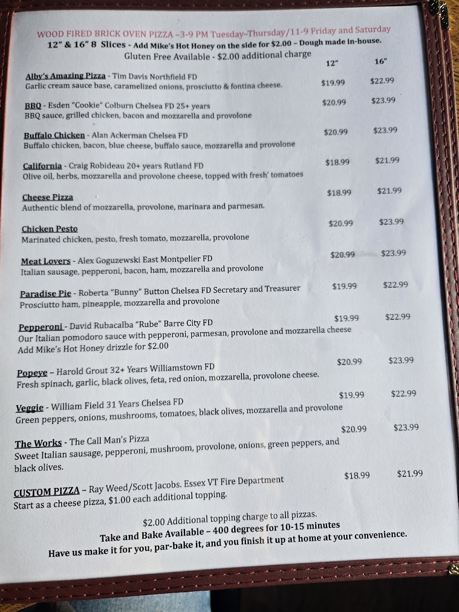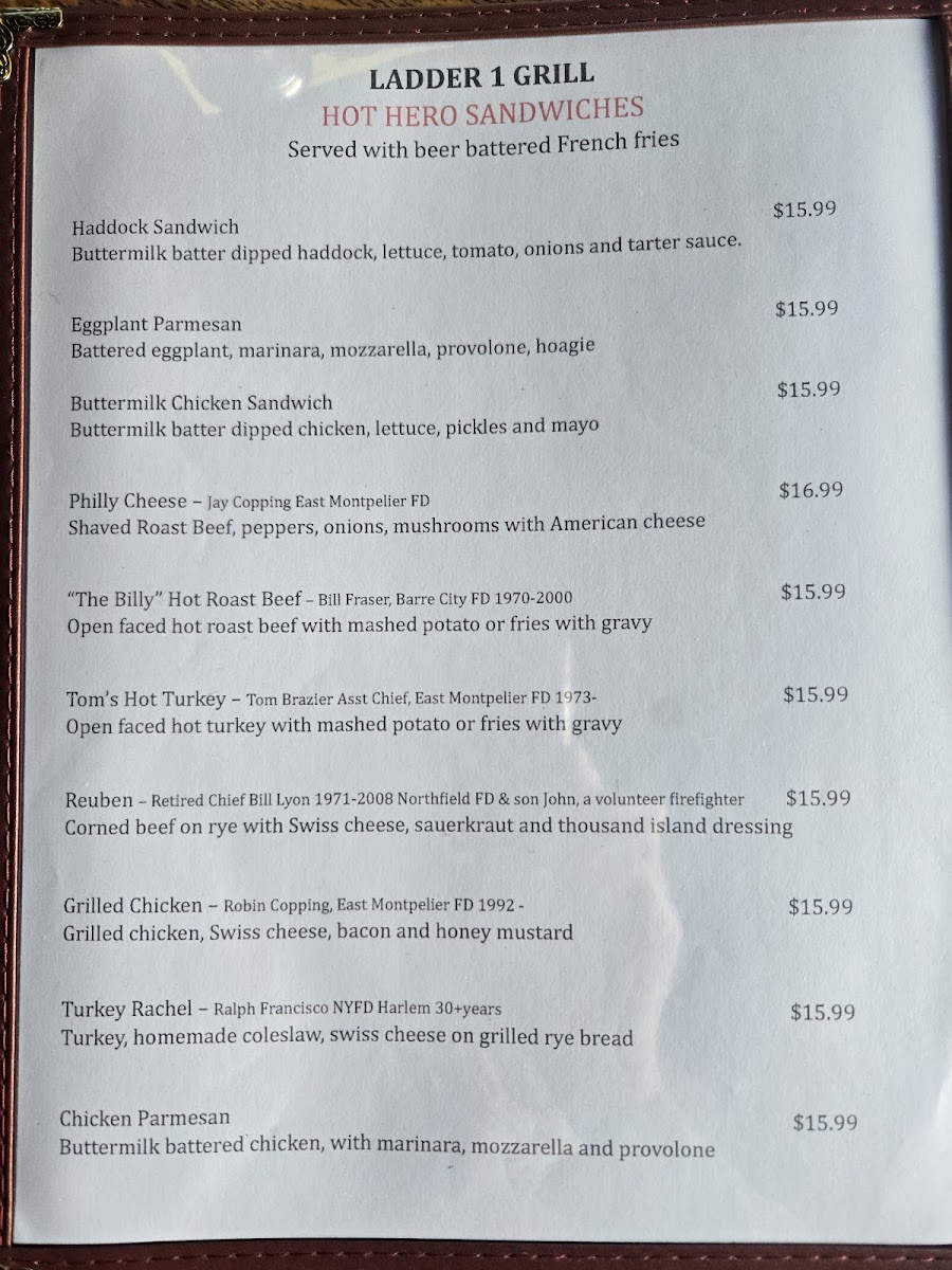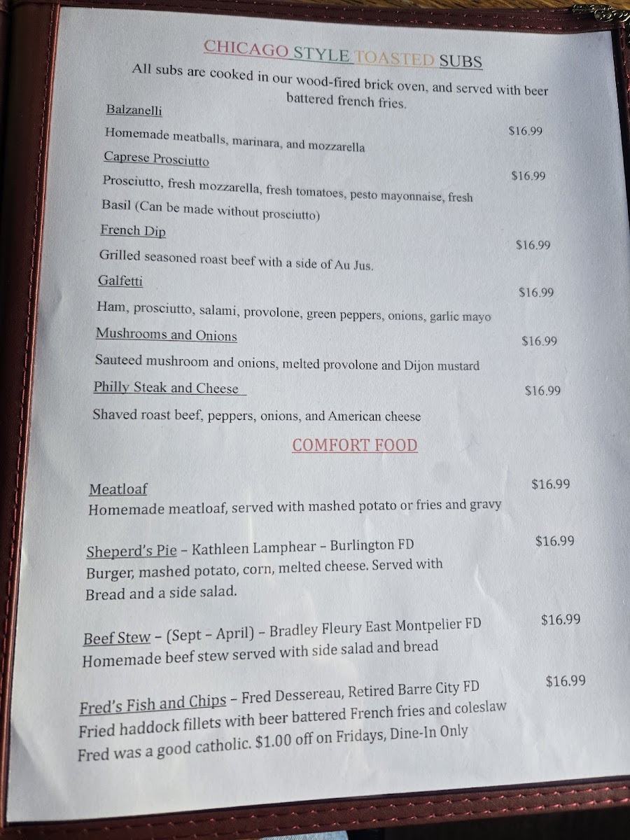 Guests can enjoy everything from a comforting bowl of French onion soup or a classic Shepard’s pie to more inventive options like the Peanut Butter and Jelly Burger or the Buffalo Chicken Pizza. Freshly ground burgers and generous salads balance the menu, while seafood lovers might appreciate the Lobster Roll or Fish and Chips. The dinner offerings after 4:00 PM include satisfying pasta dishes and flavorful chicken entrées, catering to a variety of tastes in a cozy yet historic firehouse atmosphere.